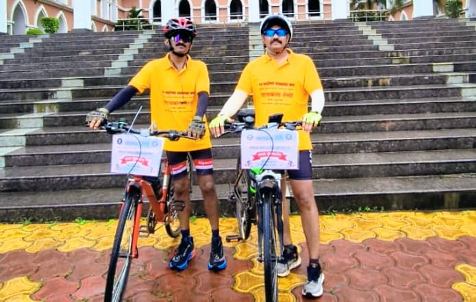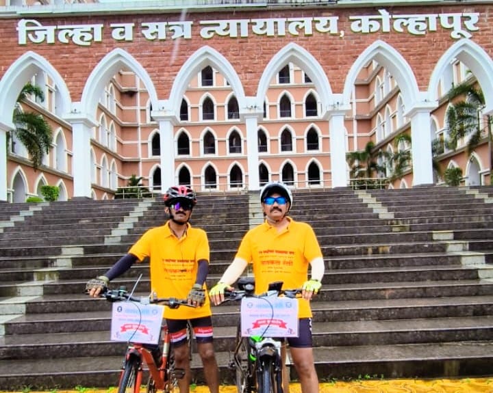 सातारा, (प्रतिनिधी) : साताऱ्यातील वकील ॲड. अजित घाडगे आणि ॲड. पंकज पवार यांनी न्यायासाठी झालेल्या चाळीस वर्षांच्या संघर्षाला सलाम करण्यासाठी आगळा-वेगळा मार्ग निवडला. साताऱ्यातून सायकलिंग करत त्यांनी तब्बल १२५ किलोमीटर अंतर पार करीत कोल्हापूर येथे नुकत्याच झालेल्या मुंबई उच्च न्यायालयाच्या सर्किट बेंचच्या ऐतिहासिक उद्घाटन सोहळ्यात सहभाग नोंदवला. तब्बल आठ तासांचा हा मजल दरमजल प्रवास त्यांनी पूर्ण करत न्यायलढ्याचा सन्मान जपला आणि पर्यावरणपूरक, आरोग्यदायी जीवनशैलीचा ठोस संदेशही दिला.