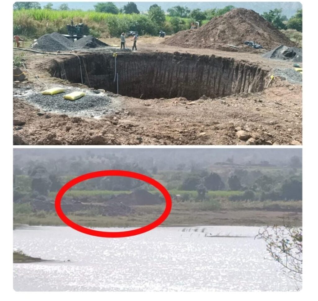 क्षेत्रात विना परवाना काढलेली विहीर मुजवण्यात यावी, असा आदेश ग्रामीण पाणी पुरवठा उप अभियंता यांनी दिले होते . सरपंच आणि ग्रामपंचायतीने कायदेशीर भुमिका वठवलीच नाही. तर तलाठ्यांनी सदर विहीर तलावाच्या फुगवटा क्षेत्रात नाही, असे दप्तरी नोंद करून दिलेल्या कागदपत्रावर महावितरणने वीज कनेक्शन दिले. तर सदर विहीर मुजवण्यात यावी असे ग्रामपंचायतीला आदेश दिले असताना ही त्यावर कारवाई केली नाही. जलसंधारण विभागाची परवानगीने न घेता काढलेली अनाधिकृत विहीर तलावाच्या पाण्यात गेल्याने ती पुन्हा चर्चेत आली आहे. ग्रामीण पाणी पुरवठा, तलाठी, ग्रामपंचायत, महावितरण यांच्या “एकमेका साह्य करू” धोरणात अनाधिकृत अस्तित्व अखेर पाझर तलाव फुगवटा क्षेत्रात ती विहीर पाण्यात गेल्याने “अधिकाऱ्यांनी तारल आणि निसर्गाने चव्हाट्यावर आणलं” आता यावर कारवाई प्रशासनाकडून काय कारवाई होणार याची उत्सुकता लागली आहे.
