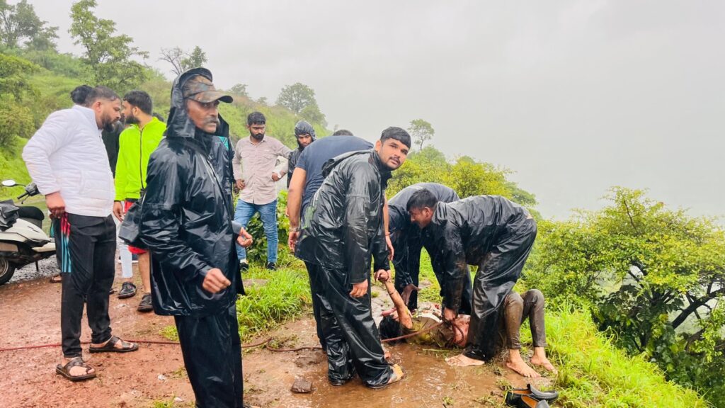 सातारा (प्रतिनिधी) : सज्जनगड ठोसेघर मार्गावरील बोरणे गावच्या हद्दीतील मंकी पॉईंट परिसरात एक युवती दरीत कोसळली. सेल्फी काढण्याच्या नादात हा प्रकार घडल्याची चर्चा असून सातारा शहरानजीकच्या डोंगर भाग परिसरातील हा दुसरा अपघात आहे . ठोसेघर संयुक्त वन व्यवस्थापन समिती व सातारा तालुका पोलिसांनी बचाव कार्य वेगाने राबवून त्या युवतीचे प्राण वाचवले आहेत मात्र संबंधित युवतीचे नाव समजू शकलेले नाही तिला अधिक उपचारासाठी खाजगी रुग्णालयात दाखल करण्यात आले आहे.