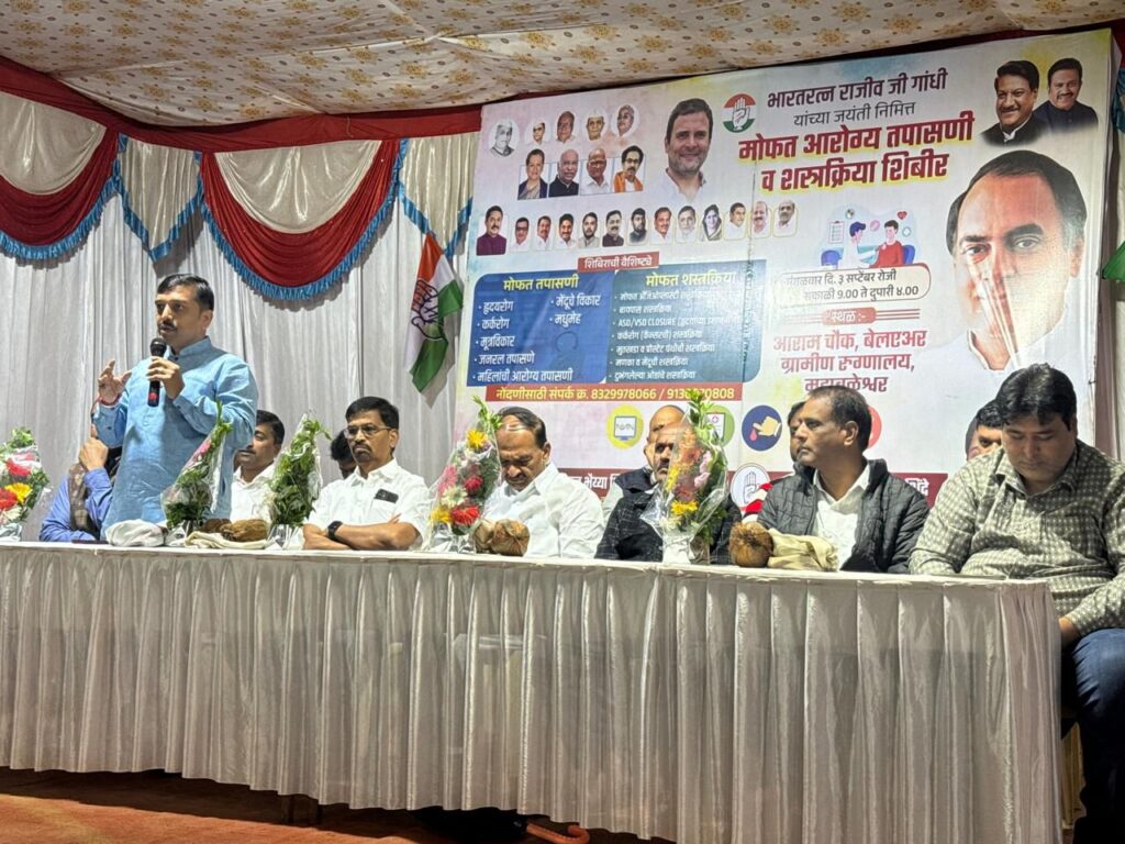 महाबळेश्वर, (प्रतिनिधी) – देशाचे माजी प्रधानमंत्री भारतरत्न राजीवजी गांधी यांच्या जयंतीच्या निमित्ताने आराम चौक, माकारिया हायस्कुल येथे विराजभैय्या शिंदे मित्र परिवार, वाई-खंडाळा-महाबळेश्वर, लोकविराज फौंडेशन आणि जीवनज्योती हेल्थकेअर फौंडेशन, पुणे यांच्या वतीने मोफत आरोग्य तपासणी व शस्त्रक्रिया शिबीराचे आयोजन करण्यात आले. काँग्रसचे नेते विराज शिंदे आणि पंचायत समितीच्या मा. सदस्या ऋजुताताई विराज शिंदे यांच्या पुढाकाराने हे शिबिर घेण्यात आले. मतदारसंघातील जनता निरोगी असावी. त्यांना आरोग्यदायी परिवेश मिळावा तसेच गरजू व्यक्तींना उच्च दर्जाच्या आरोग्य सुविधा मिळाव्या यासाठी या शिबीरांचे आयोजन केले असे विराज शिंदे यांनी स्पष्ट केले.